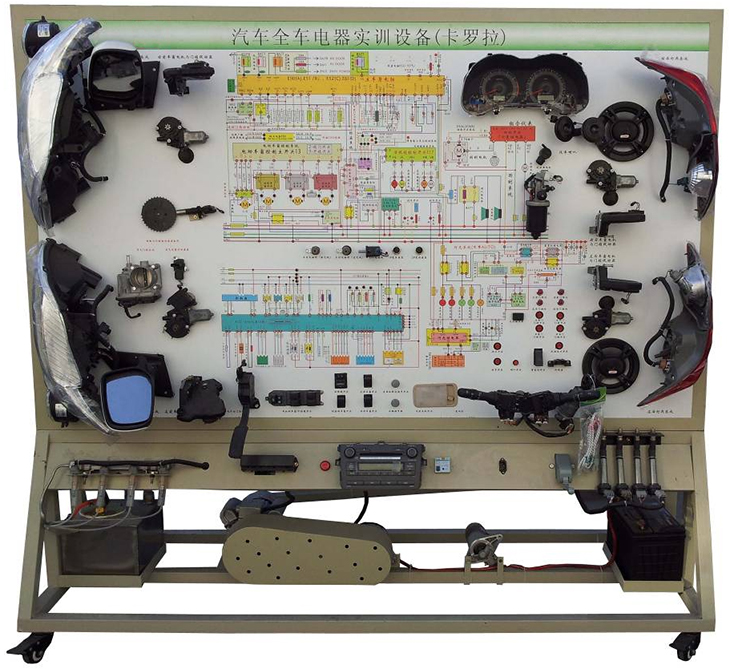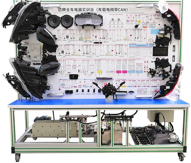 汽車電氣設(shè)備實(shí)訓(xùn)室。汽車電器設(shè)備實(shí)訓(xùn)室包含有汽車燈光系統(tǒng)、車載網(wǎng)絡(luò)系統(tǒng)、全車電器系統(tǒng)、汽車啟動系統(tǒng)、汽車空調(diào)系統(tǒng)、全車線路試驗(yàn)臺、等實(shí)訓(xùn)教學(xué)設(shè)備。該實(shí)訓(xùn)室可以承擔(dān)《汽車構(gòu)造》、《汽車電器設(shè)備》、《汽車電控系統(tǒng)》、《汽車檢測與診斷》等課程的實(shí)踐教學(xué)任務(wù)?梢杂糜谘芯俊⒎治鋈囯娖飨到y(tǒng)、燈光系統(tǒng)、儀表系統(tǒng)等電器設(shè)備的電路及功能。利用這些系統(tǒng)進(jìn)行實(shí)踐教學(xué),使學(xué)生熟悉汽車電器的結(jié)構(gòu)和工作原理,掌握各個(gè)系統(tǒng)的基本組成電路,掌握主要電路的檢測方法和系統(tǒng)的故障特征,從而具有一定的檢測和調(diào)校能力。