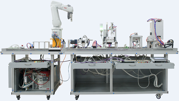工業(yè)機(jī)器人循環(huán)生產(chǎn)線實(shí)訓(xùn)裝備,工業(yè)機(jī)器人智能生產(chǎn)線實(shí)訓(xùn)系統(tǒng)以工業(yè)化現(xiàn)場(chǎng)真應(yīng)用作為教學(xué)藍(lán)本,采用多種型式、多種規(guī)格、多種應(yīng)用組合成型的工業(yè)應(yīng)用生產(chǎn)線。主要以體現(xiàn)工業(yè)機(jī)器人典型應(yīng)用,讓學(xué)生撐握真實(shí)工業(yè)機(jī)器人現(xiàn)場(chǎng)應(yīng)用方法。通過以工業(yè)現(xiàn)場(chǎng)真實(shí)應(yīng)用案例實(shí)訓(xùn),縮短教學(xué)實(shí)訓(xùn)與工廠崗位應(yīng)用的差距。