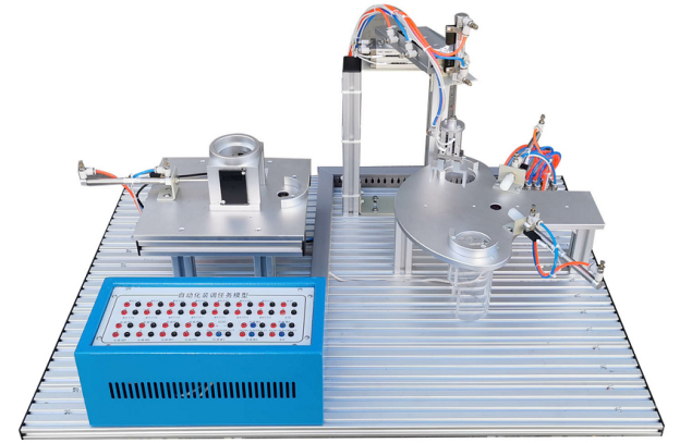 該任務由氣動機械手、分揀機構、上料機構、安裝網(wǎng)孔板、電氣接口板、電磁閥組等組成,安裝網(wǎng)孔板由有1.2mm優(yōu)質不銹鋼鋼板加工制作,機構件由鋁材機加氧化而成,機構全部為散件提供,按教學要求由學員自己動手組裝、接線并通過接口板與外部連接調(diào)試。