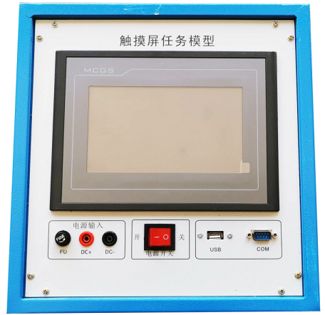 該任務盒有1.2mm優(yōu)質鋼板加工噴涂制作,面板有鋁板加工沖孔而成,表面貼膜制作,觸摸屏采用表面卡嵌式安裝,引出觸摸屏通訊接口與電源,便于實訓,易于觸摸屏的保護及搬運。