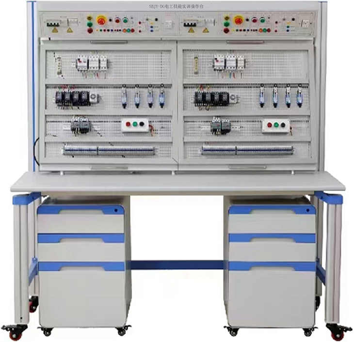 電氣安裝與維修實(shí)訓(xùn)考核裝置是根據(jù)工廠(chǎng)電氣安裝和室內(nèi)電氣安裝等維修 電工和電氣安裝工實(shí)訓(xùn)鑒定要求開(kāi)發(fā)的一種通用實(shí)訓(xùn)平臺(tái)。 適合于各類(lèi)職業(yè)院校 和技工學(xué)校維修電工、 電氣安裝工、水電工等有電氣實(shí)訓(xùn)要求的相關(guān)專(zhuān)業(yè)的作為 公共實(shí)訓(xùn)平臺(tái)使用。 采用鋼制網(wǎng)孔板和鋼制專(zhuān)用型材組接而成,安裝有自鎖式腳輪,方便移動(dòng)和使用。裝 置表面噴塑,色彩穩(wěn)重氣派。電氣安裝與維修實(shí)訓(xùn)裝置設(shè)計(jì)高度以人站在一級(jí)人字梯即可方便操作的高度,既安 全又能使使用者感受到施工現(xiàn)場(chǎng)環(huán)境。 橫向、 叢向?qū)挾群线m, 可以模擬現(xiàn)場(chǎng)線(xiàn)路的轉(zhuǎn)向布置。