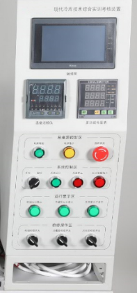3、開放性。該設(shè)備設(shè)置了一個(gè)系統(tǒng)操作臺(tái),在庫體一側(cè)安裝有可更換側(cè)板,以便于學(xué)員在上述的操作臺(tái)與側(cè)板上安裝制冷系統(tǒng)和電路系統(tǒng)等。