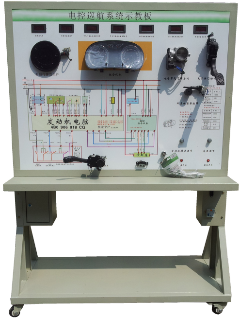 操縱油門踏板位置傳感器可實(shí)現(xiàn)節(jié)氣門開度的調(diào),可真實(shí)展示電子節(jié)氣門的工作原理和工作過程;操縱巡航控制開關(guān)和車速信號,設(shè)定巡航狀態(tài),引擎控制單元可對節(jié)氣門開度進(jìn)行調(diào)節(jié),真實(shí)演示汽車電子巡航系統(tǒng)的工作過程和工作原理。