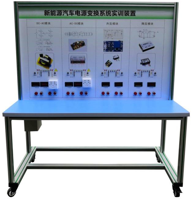 DC-AC模塊(12V轉(zhuǎn)220V)、點(diǎn)火開關(guān)、AC-DC模塊(220V轉(zhuǎn)12V)、升壓模塊(12V轉(zhuǎn)24V)、降壓模塊(24V轉(zhuǎn)12V)、發(fā)光二極管閃光燈燈條、指示燈、操作開關(guān)、接觸器、急停開關(guān)、一體化全鋁合金型材搭建的移動臺架(1500×700×1700mm 帶自鎖腳輪裝置,帶安裝檢測端子的原理面板,面板1448×940mm)、設(shè)備操作說明書。
