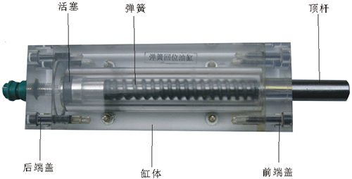 2、彈簧回位油缸的缸體,端蓋等均采用了進(jìn)口透明有機(jī)玻璃材料精制而成,透明清晰,頂桿采用45#中碳鋼材料,并配合油接頭、密封圈、內(nèi)六角螺絲等標(biāo)準(zhǔn)件裝配而成,通過它可明確地觀察到活塞、頂桿、油封、油孔、彈簧等結(jié)構(gòu)及其運(yùn)行過程,具有形象逼真,性能可靠等腰三角優(yōu)點(diǎn),它即可作為教學(xué)模型,也可作為液壓實驗元件進(jìn)行實驗演示。