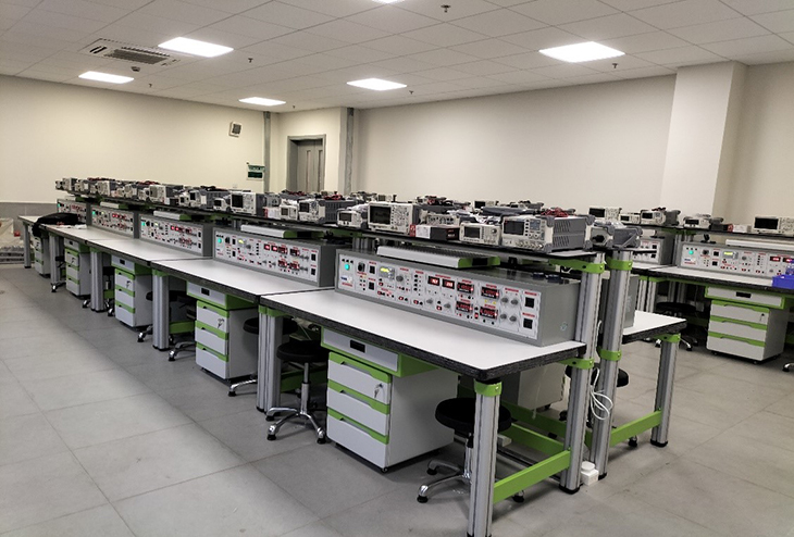 電子工藝實習室是供學生焊接練習、電子產(chǎn)品組裝調(diào)試操作的實驗室,學生進行焊接操作。配備的儀器設備主要有直流穩(wěn)壓電源、示波器、萬用表、工具箱等。為了改善實習室的空氣環(huán)境衛(wèi)生,還專門配備了抽風系統(tǒng)。開設的課程有《電子工藝實習》、《電工實習》,包括電路元件的選配、電子產(chǎn)品的安裝、焊接和性能測試等環(huán)節(jié)。電子工藝實驗實訓室設備主要面向汽車、機械、電信、電氣、計算機、經(jīng)濟、管理等學院的學生,培養(yǎng)學生的動手實踐能力、分析問題和解決問題的能力以及創(chuàng)新精神。