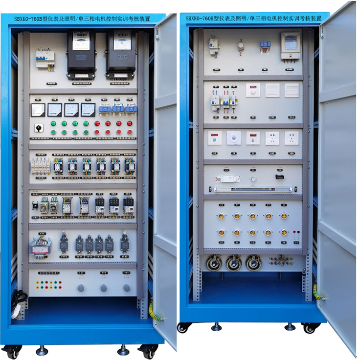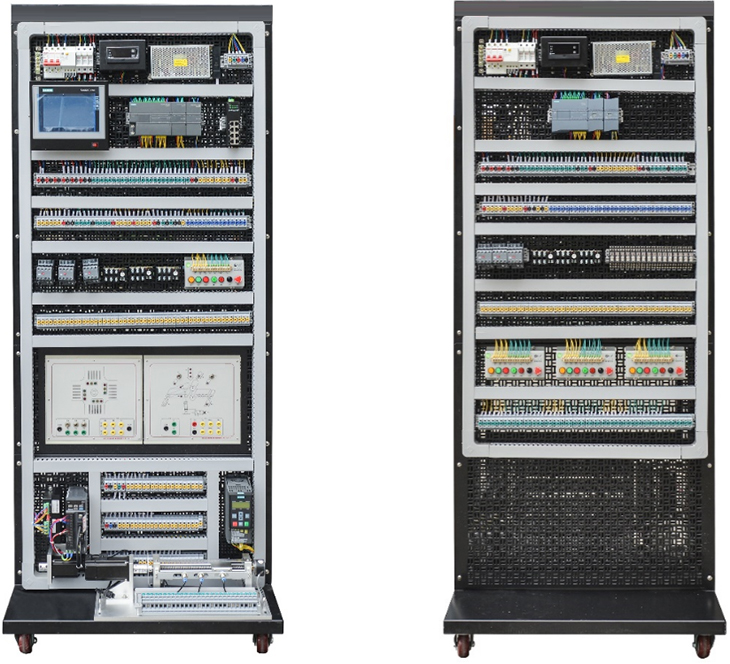現(xiàn)代電氣控制系統(tǒng)安裝與調(diào)試實(shí)訓(xùn)考核裝置適合高等職業(yè)學(xué)校的機(jī)電設(shè)備安裝與維修、機(jī)電技術(shù)應(yīng)用、電氣運(yùn)行與控制、電氣技術(shù)應(yīng)用和電子電器應(yīng)用與維修等專業(yè),包括機(jī)械運(yùn)動模塊,繼電模塊,儀表顯示模塊,按鈕單元,組態(tài)模塊,特種電機(jī)單元,通信單元等組成,通過相應(yīng)的掛板組件組成多種簡單或復(fù)雜的電氣控制系統(tǒng)完成教學(xué)和實(shí)訓(xùn)。