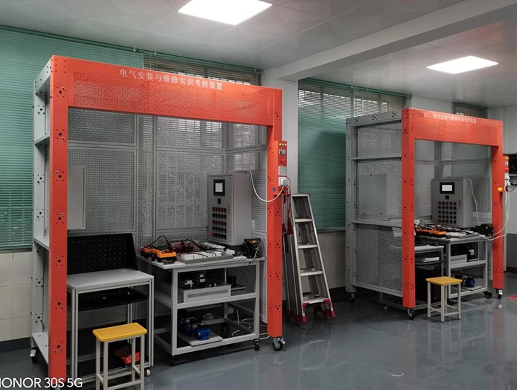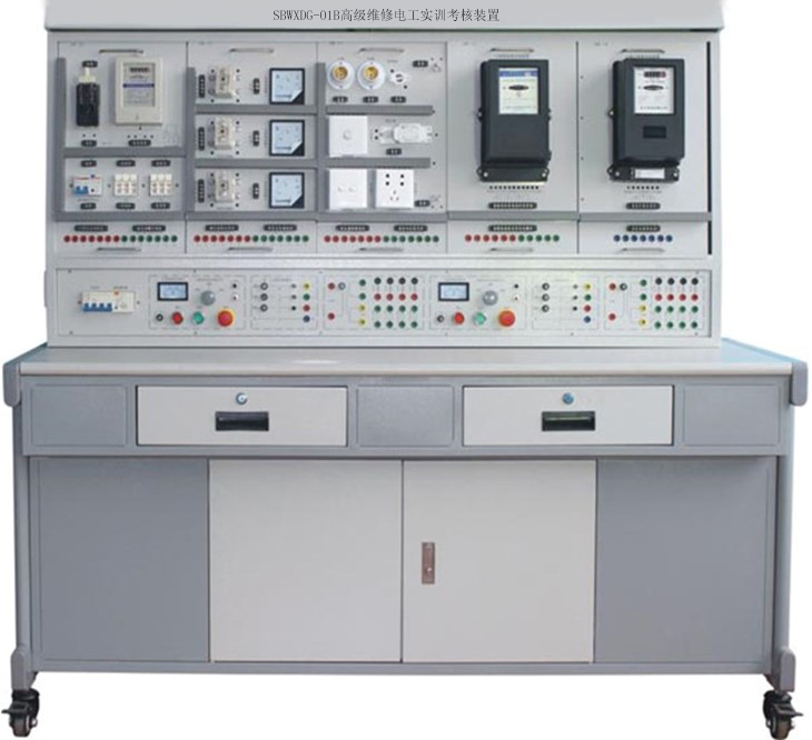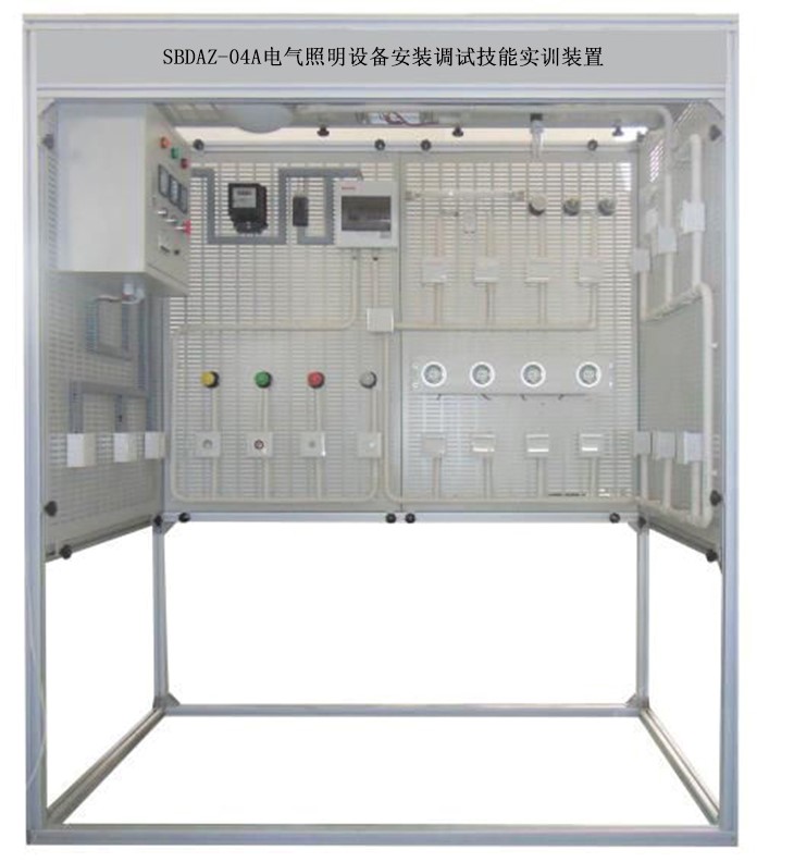 電氣安裝與維修實(shí)訓(xùn)考核裝置是根據(jù)工廠電氣安裝和室內(nèi)電氣安裝等維修 電工和電氣安裝工實(shí)訓(xùn)鑒定要求開(kāi)發(fā)的一種通用實(shí)訓(xùn)平臺(tái)。 適合于各類(lèi)職業(yè)院校 和技工學(xué)校維修電工、 電氣安裝工、水電工等有電氣實(shí)訓(xùn)要求的相關(guān)專(zhuān)業(yè)的作為 公共實(shí)訓(xùn)平臺(tái)使用。 采用鋼制網(wǎng)孔板和鋼制專(zhuān)用型材組接而成,安裝有自鎖式腳輪,方便移動(dòng)和使用。裝 置表面噴塑,色彩穩(wěn)重氣派。電氣安裝與維修實(shí)訓(xùn)裝置設(shè)計(jì)高度以人站在一級(jí)人字梯即可方便操作的高度,既安 全又能使使用者感受到施工現(xiàn)場(chǎng)環(huán)境。 橫向、 叢向?qū)挾群线m, 可以模擬現(xiàn)場(chǎng)線(xiàn)路的轉(zhuǎn)向布置。