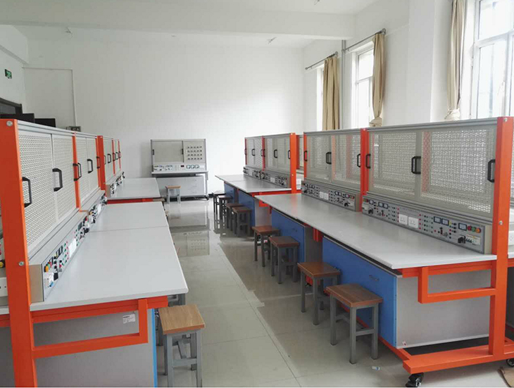 中級(jí)維修電工實(shí)訓(xùn)室有中級(jí)維修電工實(shí)訓(xùn)臺(tái),面向電氣自動(dòng)化技術(shù)、應(yīng)用電子技術(shù)、機(jī)電一體化技術(shù)等專(zhuān)業(yè),可以進(jìn)行工廠電氣控制設(shè)備技能訓(xùn)練、機(jī)床電路、電氣控制與PLC技能訓(xùn)練等項(xiàng)目的實(shí)訓(xùn)教學(xué),并可以進(jìn)行中級(jí)維修電工技能鑒定工作。