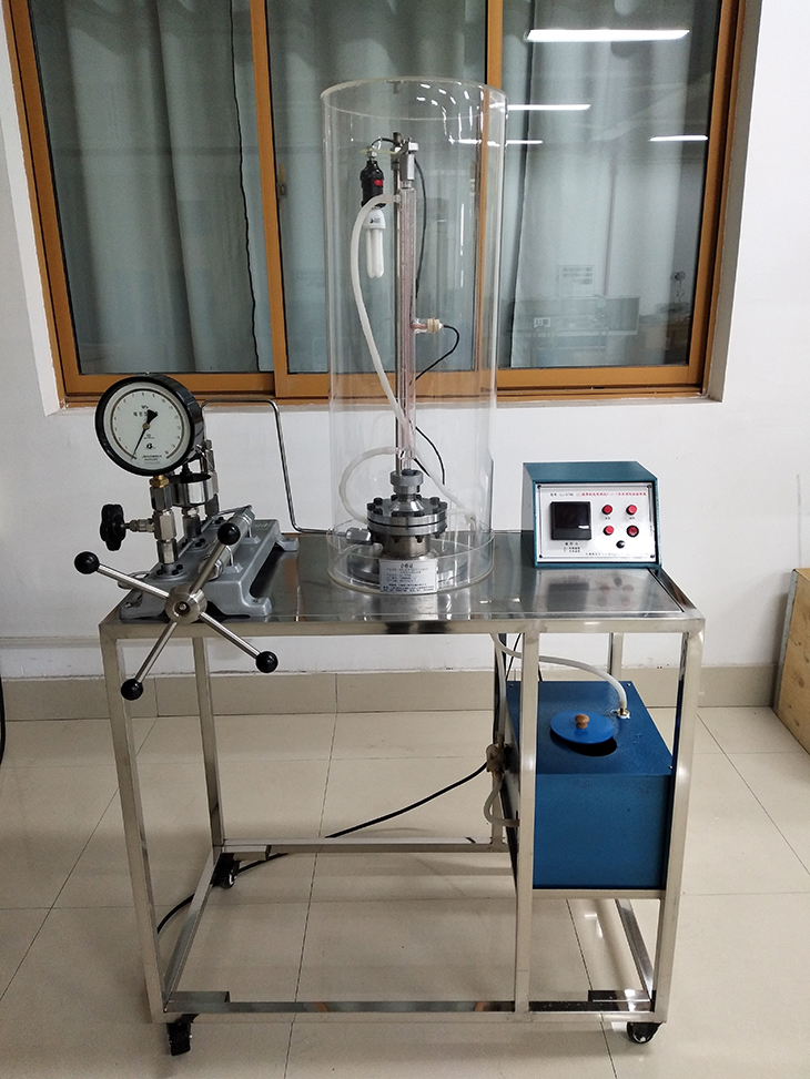 3、高壓容器,用45號(hào)鋼加工焊接而成,表面采用鍍鉻處理;高壓玻璃管,厚度3mm,耐壓11MPa。